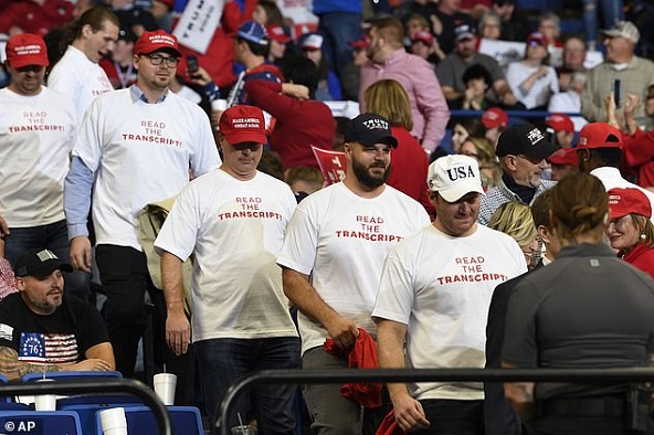 Of all the many examples of this that there have been, I think the most dramatic has been his command to “Read the transcipt!” Sometimes in all caps. This has turned out to be such a winner of a line that it’s even been printed on t-shirts for his followers to wear at rallies.