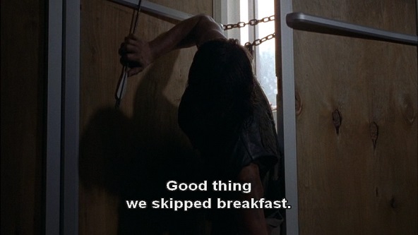 I guess it would be impossible to expect an entire cast to get extra-skinny and keep the weight off during the course of a multi-year project like a cable series, but it’s another one of those things (like the ability of all the survivors to kill every walker with effortless head shots every time, like the most expert marksmen) that makes the zombie apocalypse seem like not such a bad thing. Nobody ever gets cold and there’s lots of snack food lying around.