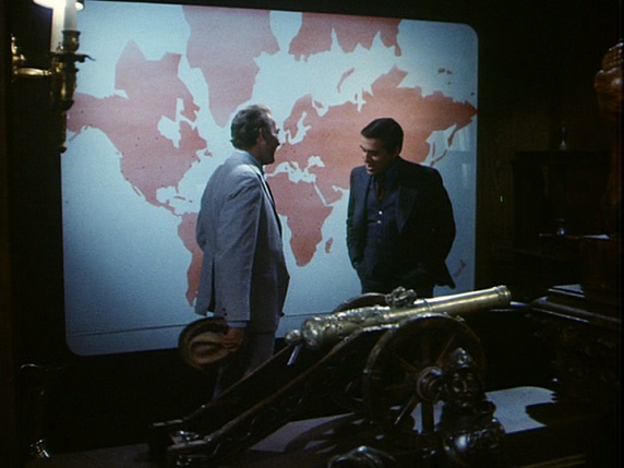 I’ve recently been watching Kolchak: The Night Stalker, a fun precursor to The X-Files that only ran for a single season in 1974-75. In the episode “Primal Scream” a team of scientists in the Arctic who are working for an oil company bring a cell sample back to Chicago that then thaws out in their lab and turns into a murderous pre-human. At one point Kolchak goes to the office of the vice-president of the oil company, who explains some of their drilling operations by pointing to a giant wall map showing the Arctic region.