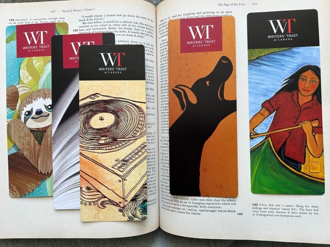 The Writers’ Trust has a bunch of literary prizes that they give out in different categories. The names sometimes change for branding purposes, but here’s a selection I’ve picked up celebrating the winners from previous years. From left to right: 2015 Vicky Metcalf Award for Literature for Young People, 2015 Hilary Weston Writers’ Trust Prize for Nonfiction, 2007 Rogers Writers’ Trust Prize for Fiction, 2015 Rogers Writers’ Trust Prize for Fiction, and the 2017 for Vicky Metcalf Award for Literature for Young People