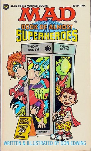I’ve previously looked at their take-offs of famous detectives. This book, written and illustrated by Don “Duck” Edwing, does something similar with superheroes. Some of these also-rans are parodies of recognizable heroes – Ms. Wonder Blunder, Fat Bat, The Macho Hunk, Superdud – while others are new inventions. Or at least they seemed like new inventions to me as I couldn’t identify any originals. In this latter camp we get Captain Trivial (“The superhero for the minor annoyances!”), Ragoo of the Jungle (“The gourmet of all comicdom!”), and The Masked Bernard (“Follow the adventures of this wonder dog of the mountain tops in his never-ending search for a fire hydrant!”).