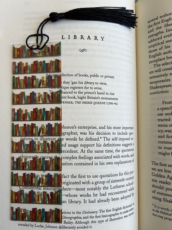 This is another see-through plastic bookmark that I think works really well. Books on top of books on top of books!