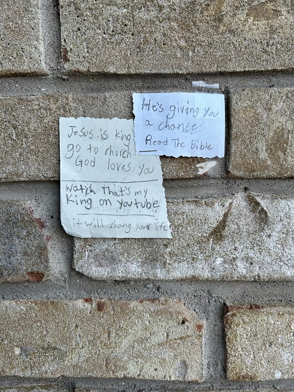 Saw this taped to the wall of the grocery store this week. Alas, post-its don’t work on brick. Anyway, I did go to YouTube as directed and found out that “That’s My King” is a Christian pop song performed by Cece Winans. It didn’t change my life, but I only gave it a couple of minutes. I thought I’d pass the message along though. Happy Easter!