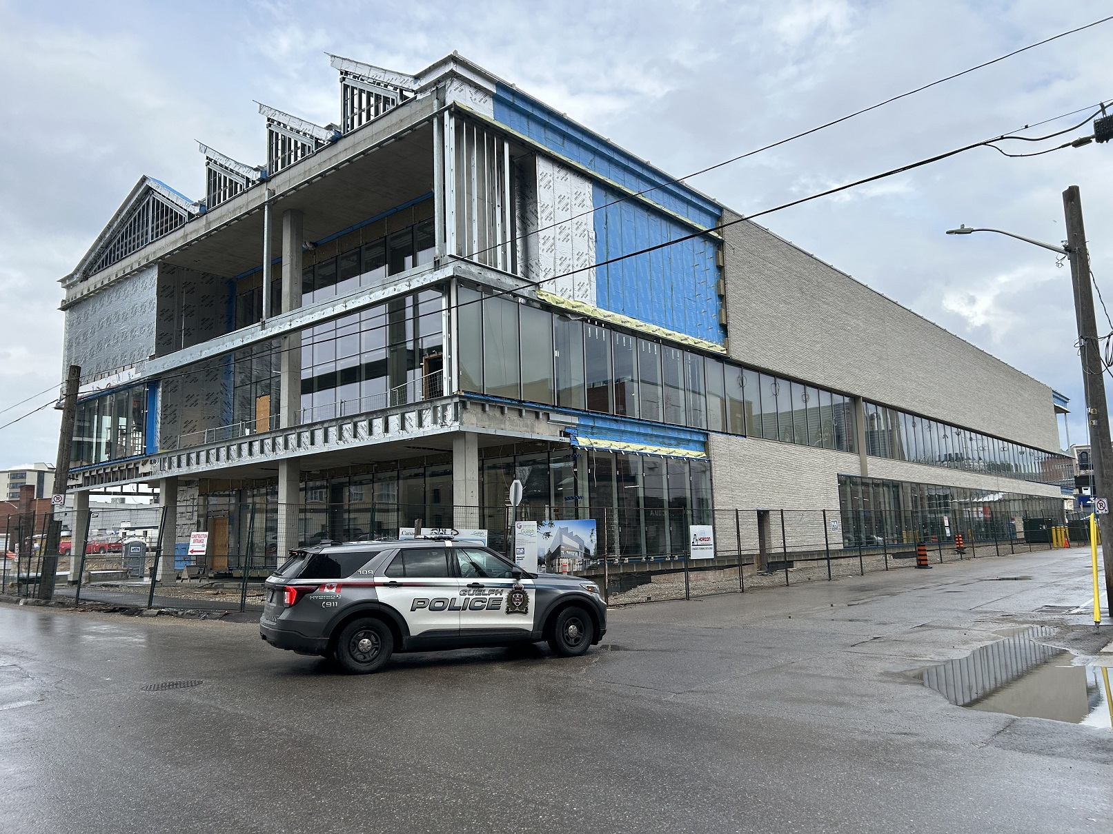 They are currently building a new library just a block away. It’s coming along nicely and looks like it’s going to be really big. On this particular morning the police were driving around a lot because there’d been an accident just a road over. (You can click on the pics to make them bigger.)