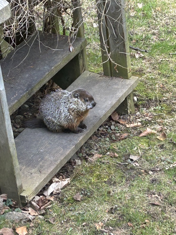 Or really the whole family is back. Yes, it’s groundhog day. The real groundhog day, that is. The return of the sub-porch pirates. But not under my porch, because I filled it with rocks. Still, they like to hang out on my porch steps. Go away!